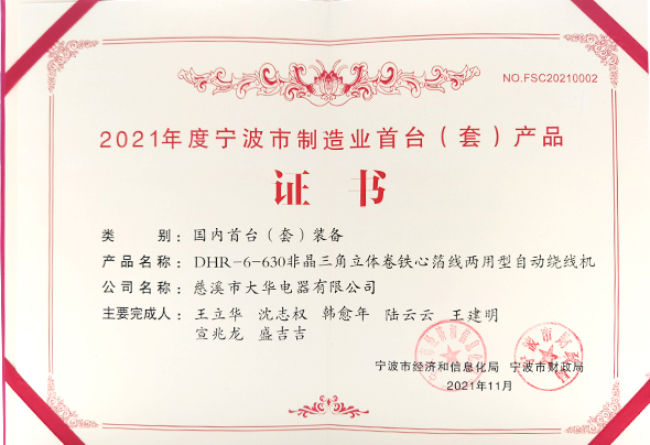 本公司已有三项发明专利、四项实用新型专利获得授权。其中,“带料拼箔式绕线机”被认定为2012年国家科技型中小企业创新基金项目,获国家、地方无偿资助110万元,目前该项目已顺利通过结题验收;“箔带两用型绕线机” 被认定为2012年宁波市第一批工业新产品;2013年浙江省重点装备制造业首台套产品,获宁波市政府奖励50万元。2014年慈溪市3044永利集团有限公司被宁波市政府列入政府优先采购目录。